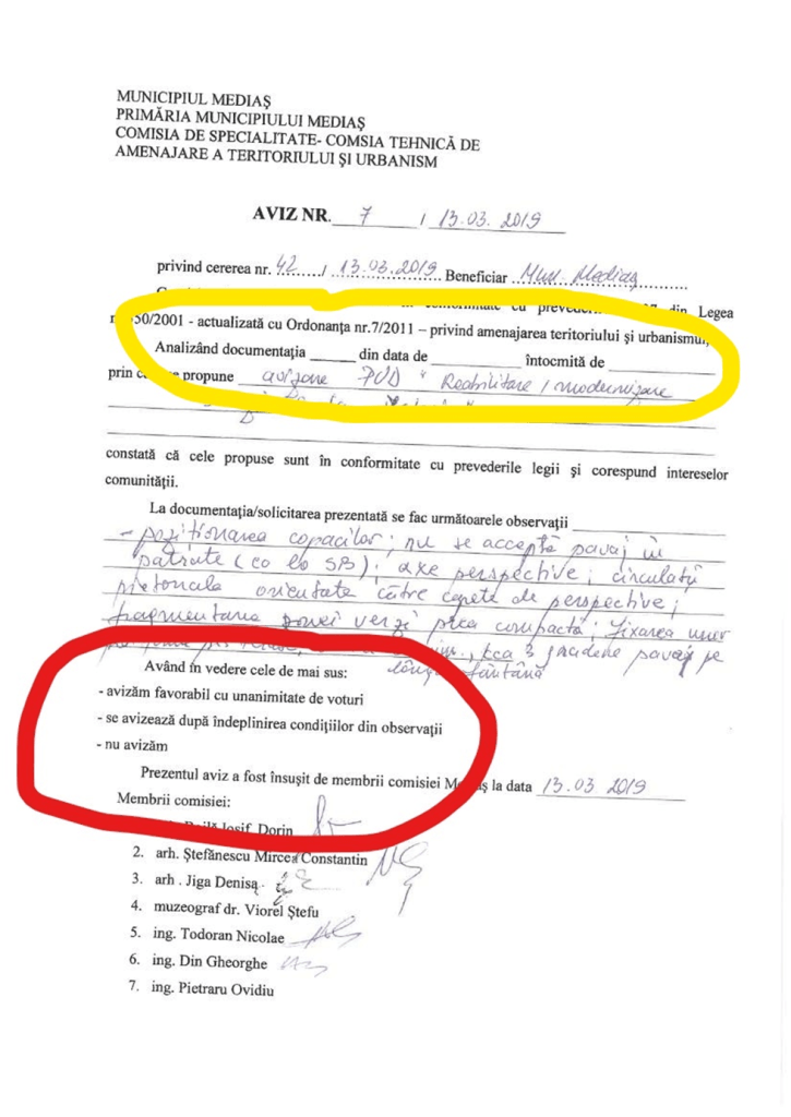Documentul, care nu este altceva decat avizul comisiei tehnice de amenajare a teritoriului si urbanism, desi este consultativ, este obligatoriu si sta la baza tuturor hotararilor referitoare la amenajarea teritoriului. Dupa cum lesne veti observa, documentul se vrea piesa de baza in adoptarea HCL nr.251/30.08.2022, dar din el (vezi ce este incercuit cu galben) nu rezulta ce documentatie avizeaza, din ce data este documentatia si nici cine a intocmit-o. Mai mult (vezi ce este incercuit cu rosu) din document nu rezulta nimic. Adica documentatia(care documentatie?) a primit aviz favorabil sau a primit aviz favorabil cu observatii sau nu a fost avizata. Deci neprimind nici un fel de aviz din partea arhitectilor, inginerilor si muzeografului, membri ai comisiei(numai somitati), putem considera, pe buna dreptate, ca avizul COMISIEI TEHNICE DE AMENAJARE A TERTORIULUI SI URBANISM nu exista. In aceste conditii si HCL nr.251/30.08.2022 poate fi considerata ca adoptata pe baza unor documente inexistente.